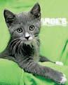 FRITZ - ONE OF A LITTER OF FOUR KITTENS BORN "IN THE WILD" BUT WHO HAVE BEEN SOCIALIZED BY LIVING AT SARGE'S ADOPTION CENTER THE PAST COUPLE OF WEEKS. FRITZ IS ADORABLE WITH HIS GRAY AND WHITE COAT AND GREAT MARKINGS.