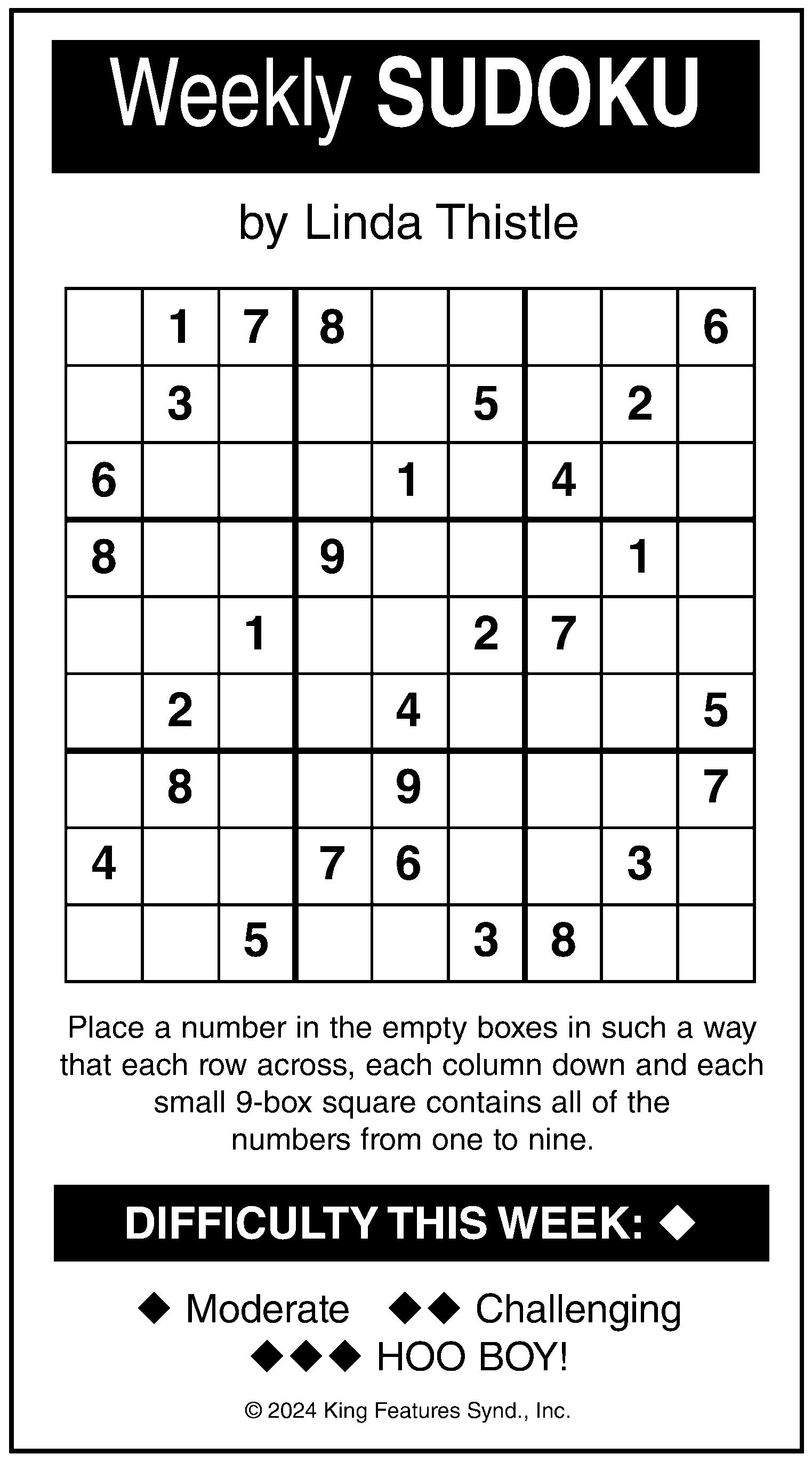 Here’s How It Works: Sudoku puzzles are formatted as a 9x9 grid, broken down into nine 3x3 boxes. To solve a sudoku, the numbers 1 through 9 must fill each row, column and box. Each number can appear only once in each row, column and box. You can figure out the order in which the numbers will appear by using the numeric clues already provided in the boxes. The more numbers you name, the easier it gets to solve the puzzle!