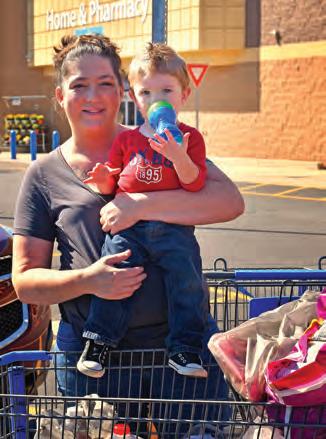 Trump supporter Elizabeth Waldroup, 32, and her son Lucas stand in the parking lot of Walmart in Sylva. Holly Kays photo.