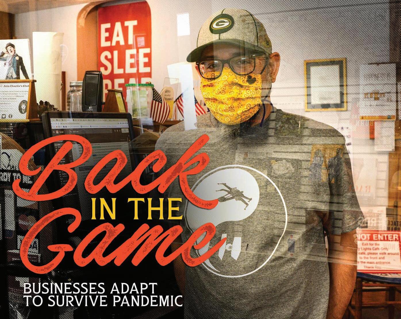 Despite the setbacks and challenges the COVID-19 Pandemic brought about in March, a surprising number of businesses in different industries have been able to weather the storm with quick-thinking, innovative changes to their operations. In some cases, businesses have made a full rebound and are reporting their best numbers ever. (Page 6) Since City Lights Bookstore reopened to the public in late spring, Eon Alden has been serving customers from behind a mask and a plexiglas barrier. Holly Kays photo