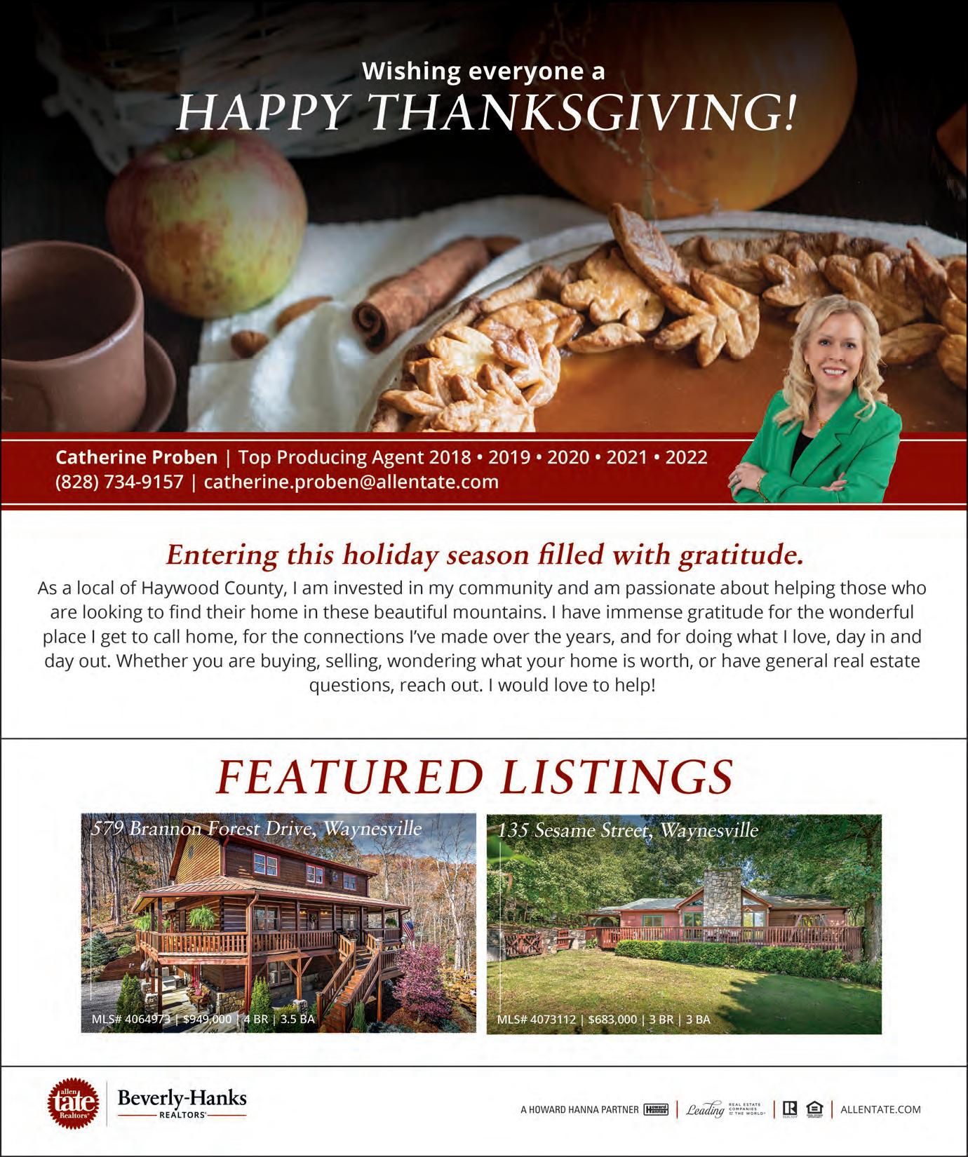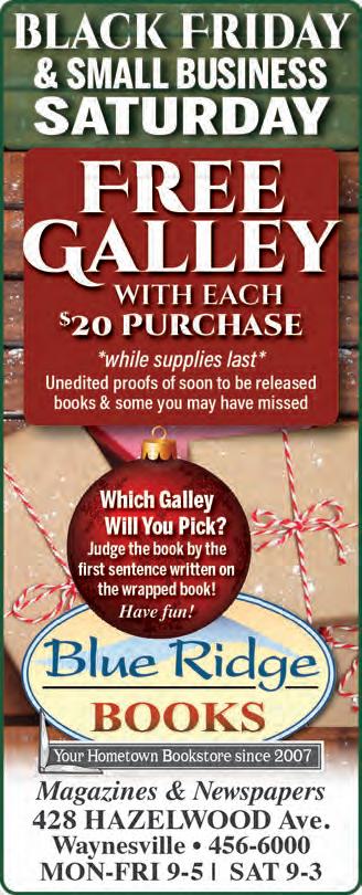 • Celebrate the Pigeon River Watershed during Haywood Waterways Association’s annual membership meeting and holiday dinner 6-8:30 p.m. Wednesday, Dec. 6, at the Lambuth Inn at Lake Junaluska. Dinner is $30 per person, with payment accepted at the door or online at haywoodwaterways.org. RSVPs required by Tuesday, Nov. 28, to 828.476.4667, ext. 1, or christine@haywoodwaterways.org. To donate an auction item, contact mackenzie@haywoodwaterways.org.