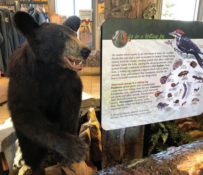 Featuring a stuffed black bear, a new exhibit tells visitors about the vast array of life that can exist inside a fallen log. BRP Foundation photo