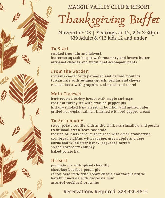 • Traditional English Tea hosted by Dogwood Crafters will be held at 1 p.m. Nov. 13 in Sylva by reservation only. A fundraiser for scholarships, the cost is $20 per person. Call 828.586.2248 to save your seat.