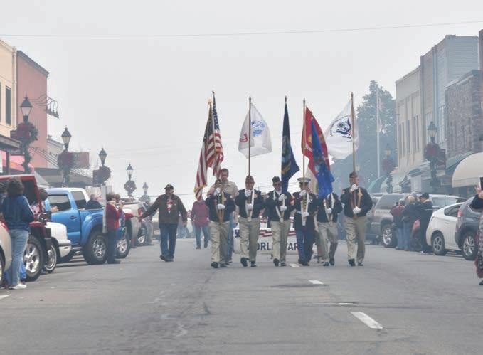 Despite smoke thick enough to turn a sunny day into a gray one, veterans displayed their patriotic pride during Franklin’s Veterans Day Parade Nov. 11. Holly Kays photo
