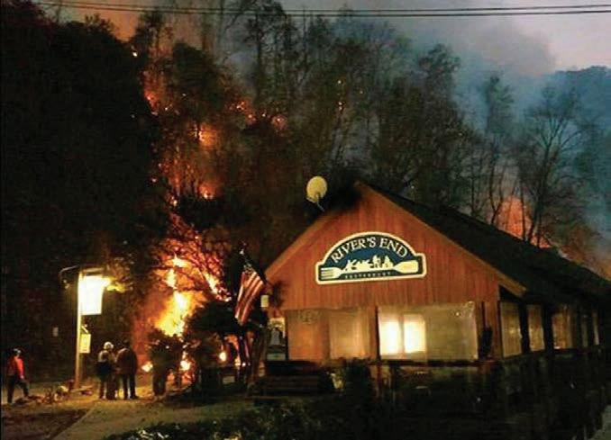 had been lifted and residents could return to their homes, all of which were still in existence. Fire lines were built alongside the Nantahala Outdoor Center, located near the Tellico/Ferebee Fire in the Nantahala Gorge, with firefighters lighting backburn fires within feet of the buildings in order to protect them from the oncoming wildfire.