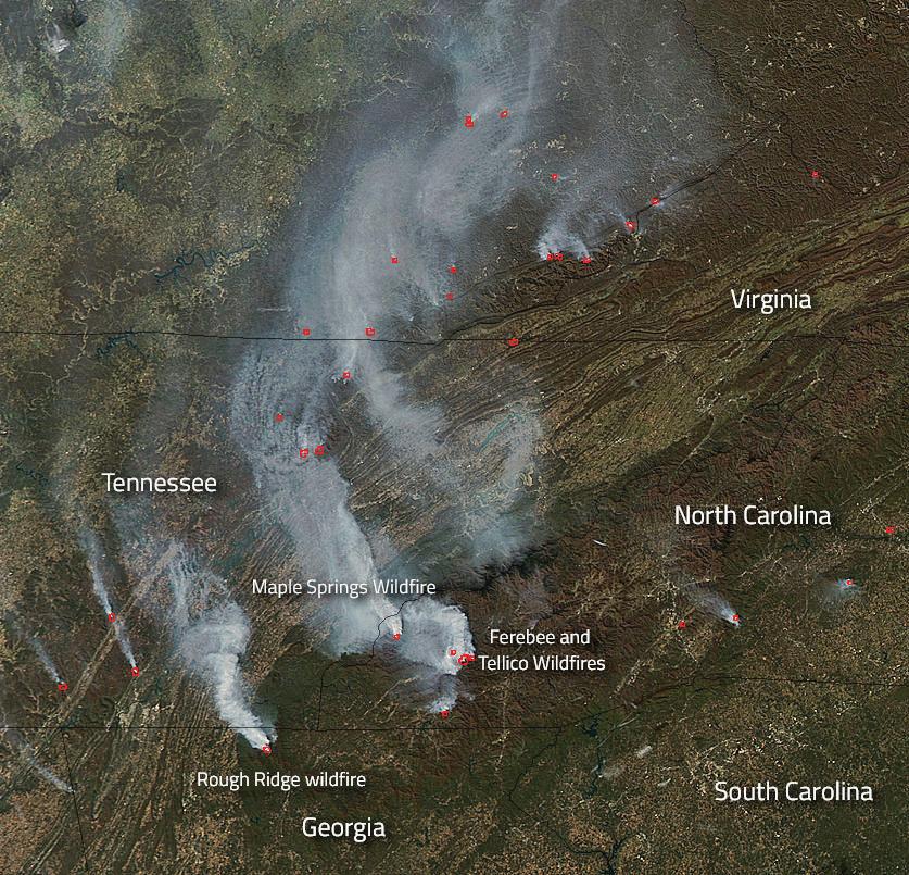 So far, 33,374 acres have been impacted with more than 1,200 firefighters responding to the blazes, whose smoke is so voluminous it is visible from space. Call 828.257.4200 with information about people setting fires or bragging about setting fires and call 911 is you see someone starting a fire.