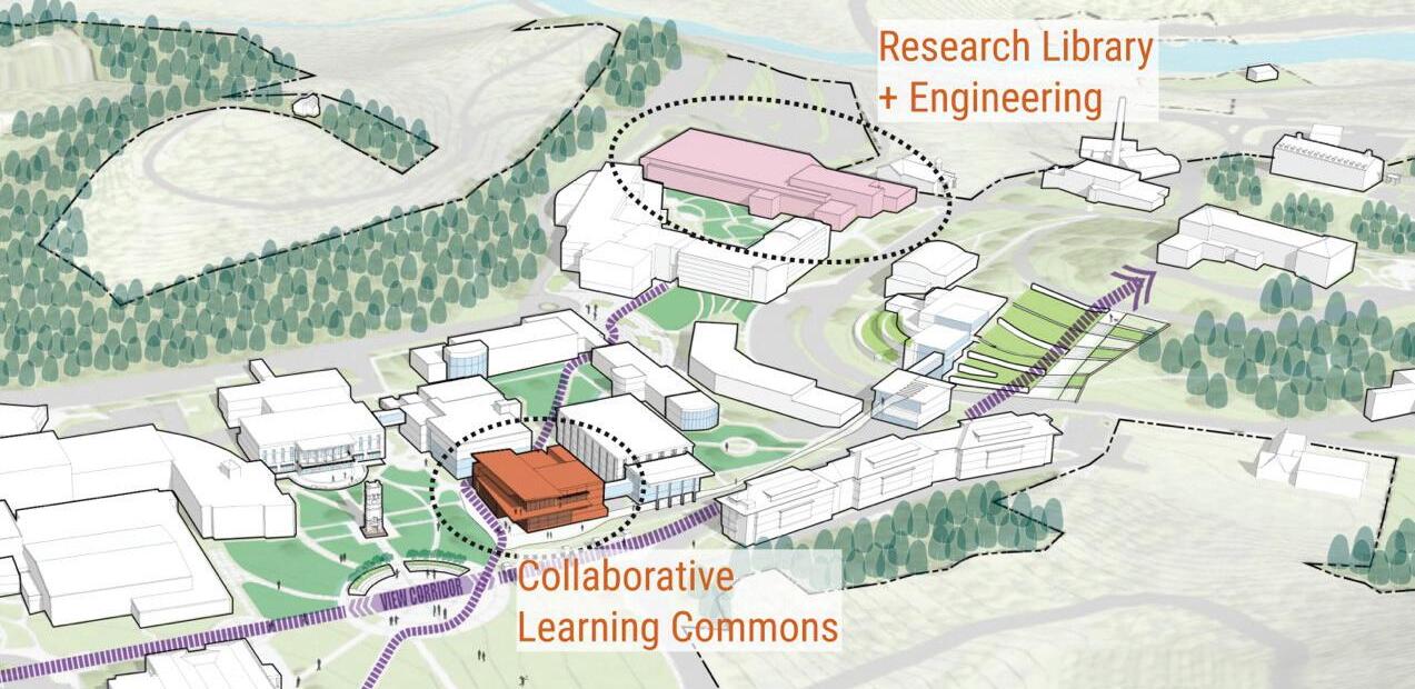 The consultants recommended moving toward a split-library model, with the pared-down stacks and research library remaining in the Hunter building. A new facility in Lot 33 behind Coulter — a “collaborative learning commons” — would offer muchneeded student collaboration space and house the library’s digital collections. While the library’s location provided a welcome refuge from center campus when it was first built, trustees said, over the years campus has grown away from it. Relocating library functions to the center of campus, said Hart, would show students that learning is a priority.