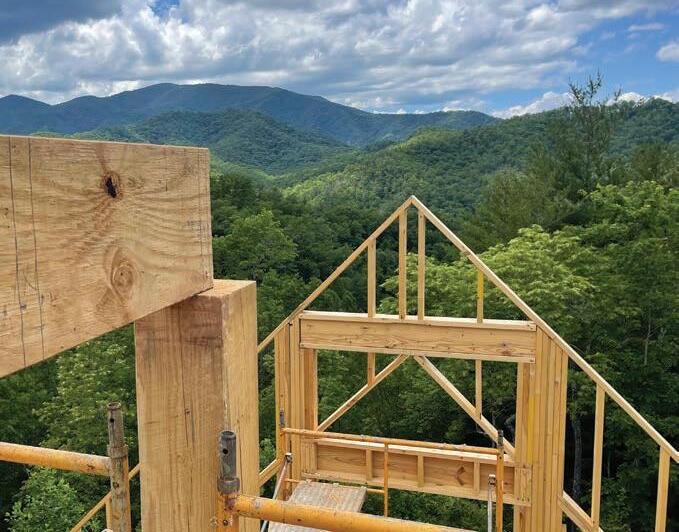 The sun was shining overhead and the autumn colors were at their peak as the builders finished up work on another custom built house that will soon be a three-story, 2,000-square-foot mountain getaway for a couple in Atlanta. The lot offers 180-degree views of the mountains looking toward Bryson City and the Great Smoky Mountains National Park.