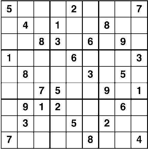 Sudoku puzzles are formatted as a 9x9 grid, broken down into nine 3x3 boxes. To solve a sudoku, the numbers 1 through 9 must fill each row, column and box. Each number can appear only once in each row, column and box. You can figure out the order in which the numbers will appear by using the numeric clues already provided in the boxes. The more numbers you name, the easier it gets to solve the puzzle!