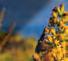 Lycopodiums and clubmosses do not produce flowers or seeds. Rather, they reproduce by spores, which are tiny, dustmite-like particles containing a single cell that can grow into a fully mature plant. The spores are born on a structure called a strobilus (plural form is strobili) that sticks up from the top of the plant, allowing for wider dispersion of spores. When they are producing spores, known as sporulating, disturbing the strobili releases a yellow cloud of dust that drifts into the air.