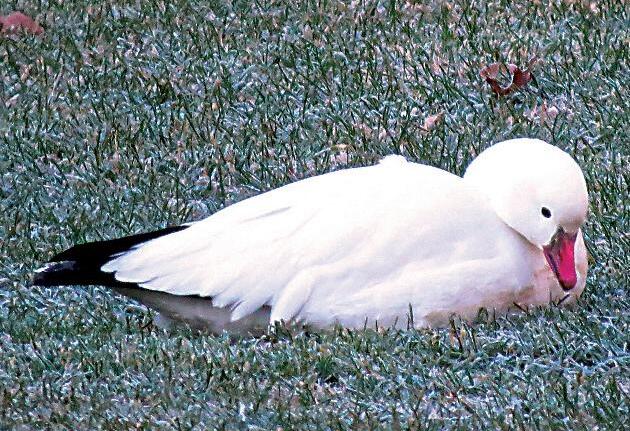 Lazy Ross’s goose at Maggie Valley Golf Course, grazing as it rests Don Hendershot photo
