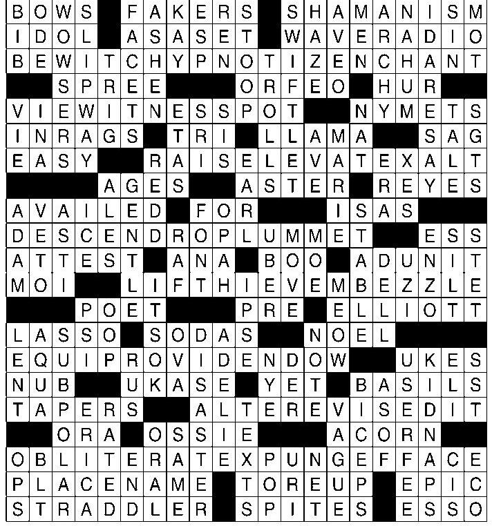 1 Spill-catching wear 2 Poem of laud 3 “Amazing!” 4 Ramp for accessing a ship 5 Gem sides 6 Ghostly pale 7 Jay-ell linkup 8 Psychic “gift” 9 Stimpy’s bud