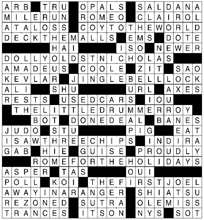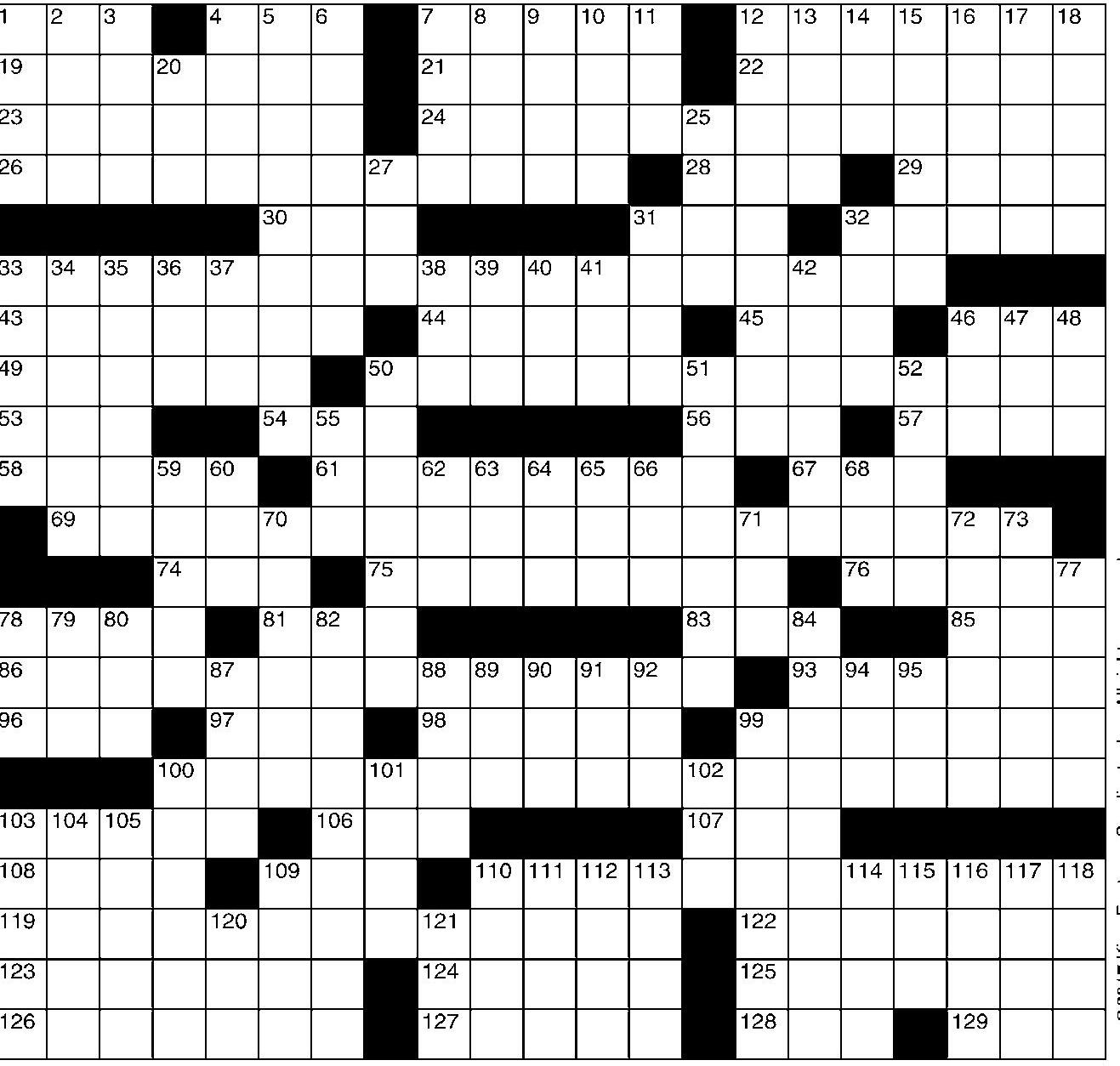 127 “Let’s roll!” 128 Purview of Gov. Cuomo 129 Dipso DOWN 1 In — rush 2 Religious act 3 Urban model — Chyna 4 Horse gait