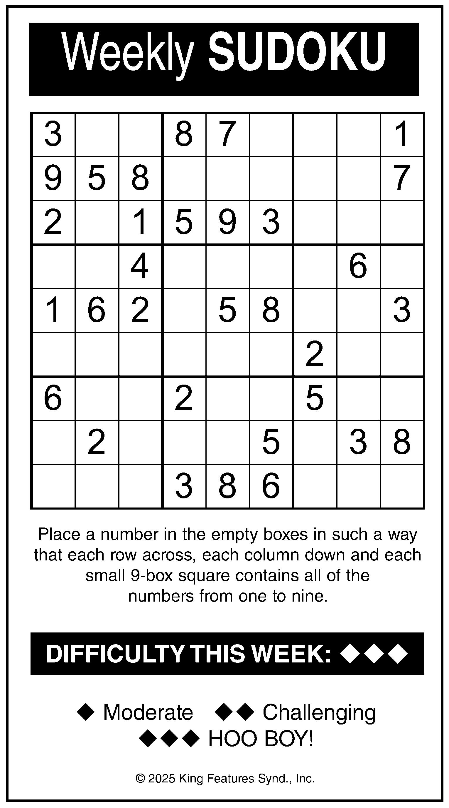 Here’s How It Works: Sudoku puzzles are formatted as a 9x9 grid, broken down into nine 3x3 boxes. To solve a sudoku, the numbers 1 through 9 must fill each row, column and box. Each number can appear only once in each row, column and box. You can figure out the order in which the numbers will appear by using the numeric clues already provided in the boxes. The more numbers you name, the easier it gets to solve the puzzle!