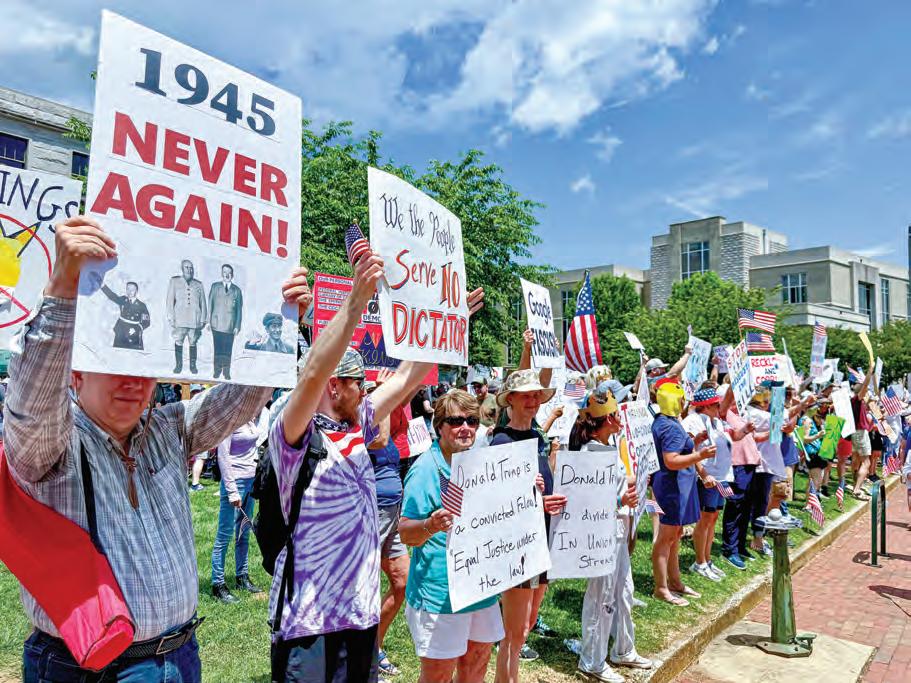 Since 1932, the ashlar veneer of the Haywood County Courthouse in Waynesville has borne silent witness to memorable events in local and national history — the Great Depression, World War II, Korea, the Civil Rights era, Vietnam, 9/11, Afghanistan, the Gulf Wars and most recently the county’s first LGBTQ+ Pride celebration — but a gathering on Flag Day, the same day President Donald Trump celebrated his birthday with a military parade in Washington, D.C., may prove to be just as enduring.