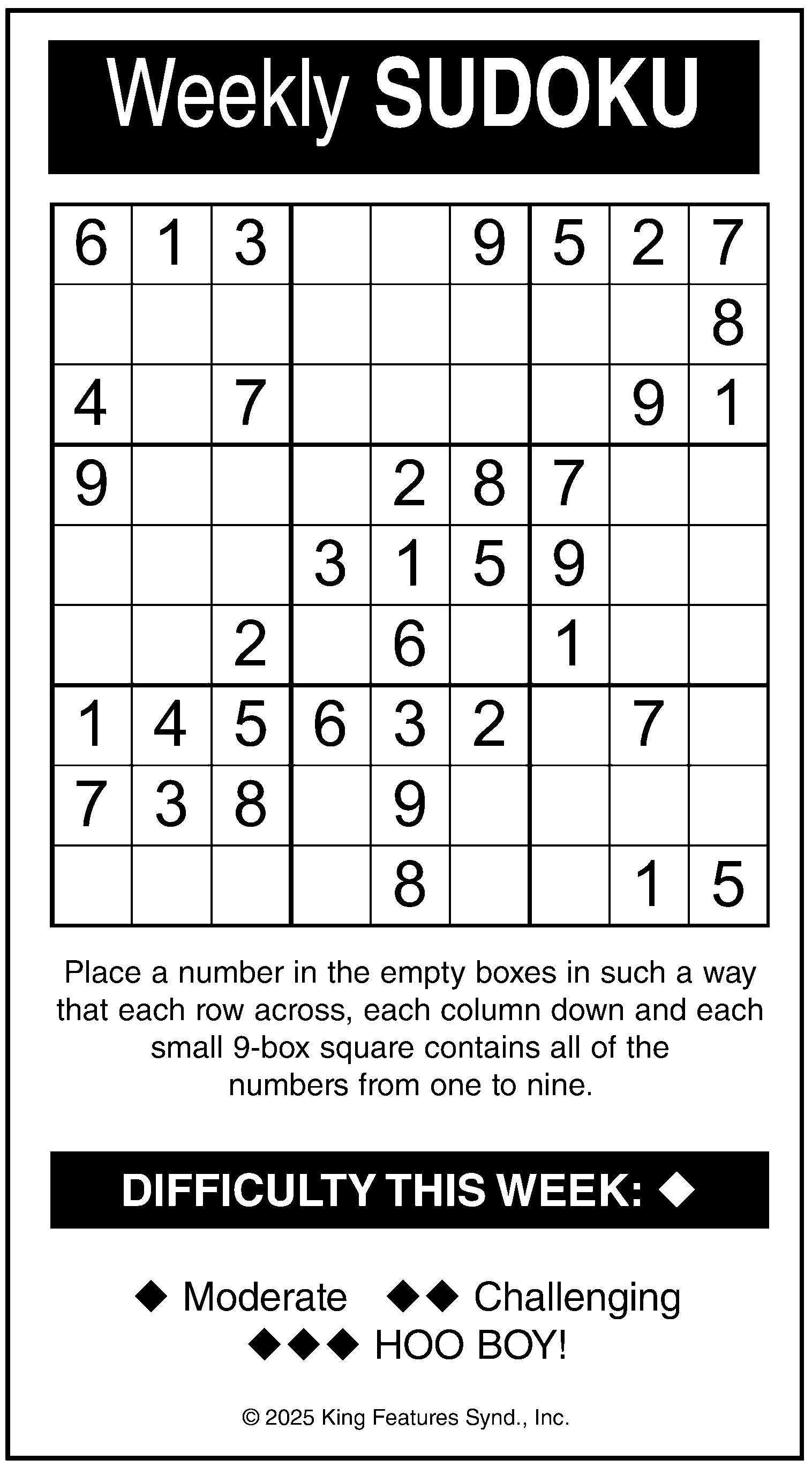 Here’s How It Works: Sudoku puzzles are formatted as a 9x9 grid, broken down into nine 3x3 boxes. To solve a sudoku, the numbers 1 through 9 must fill each row, column and box. Each number can appear only once in each row, column and box. You can figure out the order in which the numbers will appear by using the numeric clues already provided in the boxes. The more numbers you name, the easier it gets to solve the puzzle!