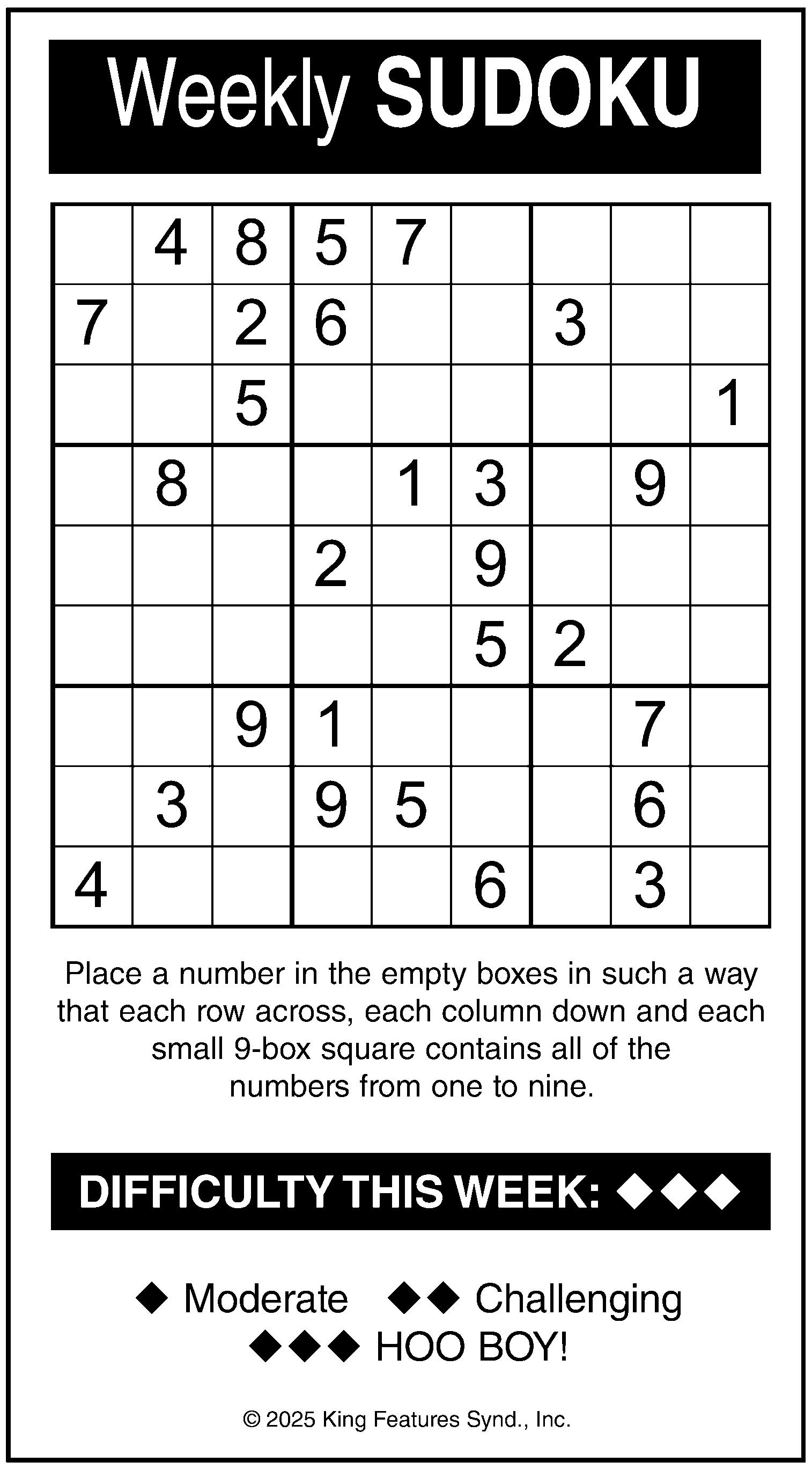 Here’s How It Works: Sudoku puzzles are formatted as a 9x9 grid, broken down into nine 3x3 boxes. To solve a sudoku, the numbers 1 through 9 must fill each row, column and box. Each number can appear only once in each row, column and box. You can figure out the order in which the numbers will appear by using the numeric clues already provided in the boxes. The more numbers you name, the easier it gets to solve the puzzle!