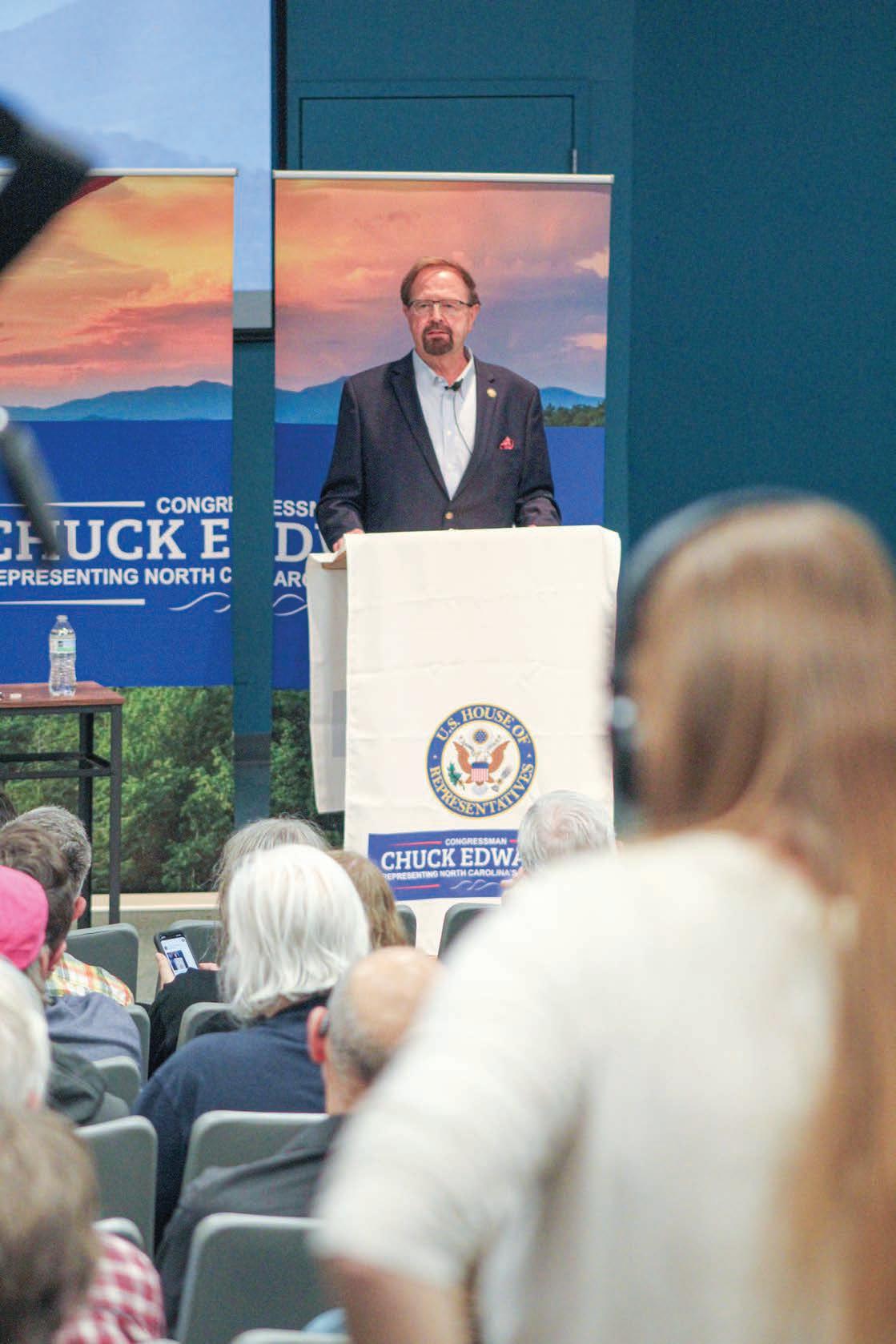 Last week, Chuck Edwards held a couple of contentious events, a town hall that was guaranteed to draw some angry protestors and an announcement in Canton of infrastructure funds that should have been nothing but positive but was interrupted by an angry resident in the audience. The Smoky Mountain News breaks it all down. (Page 11) Jack Snyder photo