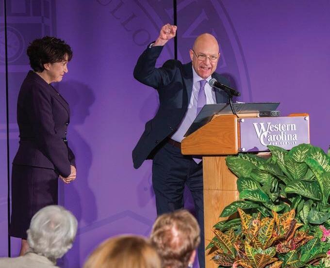After six years at the helm, Western Carolina University Chancellor David Belcher and his wife Susan discuss their recent financial commitment to the university and reflect on the emotional connection to the people of Western North Carolina. (Page 6) David and Susan Belcher show off their Catamount pride during WCU’s 2017 Homecoming parade. WCU photo