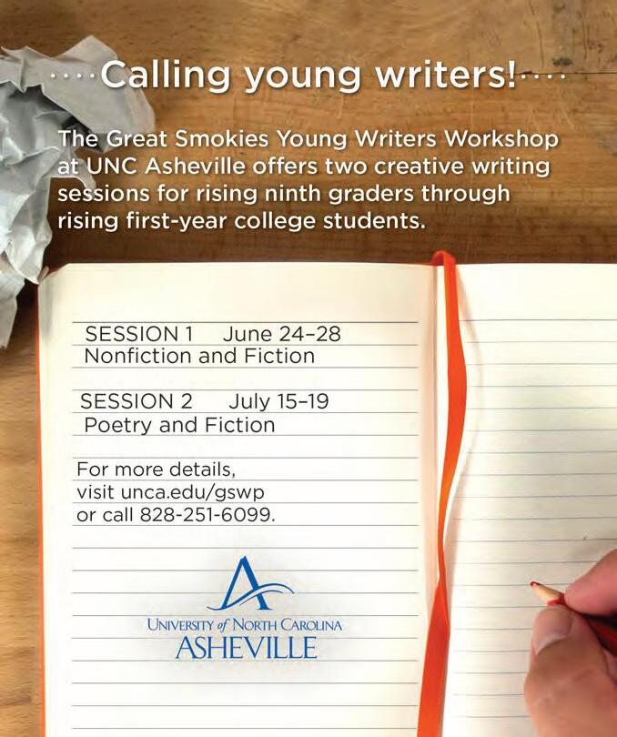 • Youth for Christ - Creativity In Creation, June 1621. Campers experience outdoor adventures in and around the Smokies, while also spending time expressing their creative side. $50 per camper. To register, visit goo.gl/forms/MmuW6ILkYhooto503.