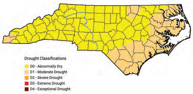 The North Carolina Drought Management Advisory Council has again classified the whole state as at least abnormally dry with a moderate drought affecting three far-west counties and most of the eastern part of the state.