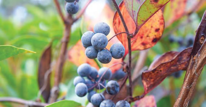 Greenbriers have creamy white flowers in springtime, and their fruits ripen to a blueish black. Adam Bigelow photo