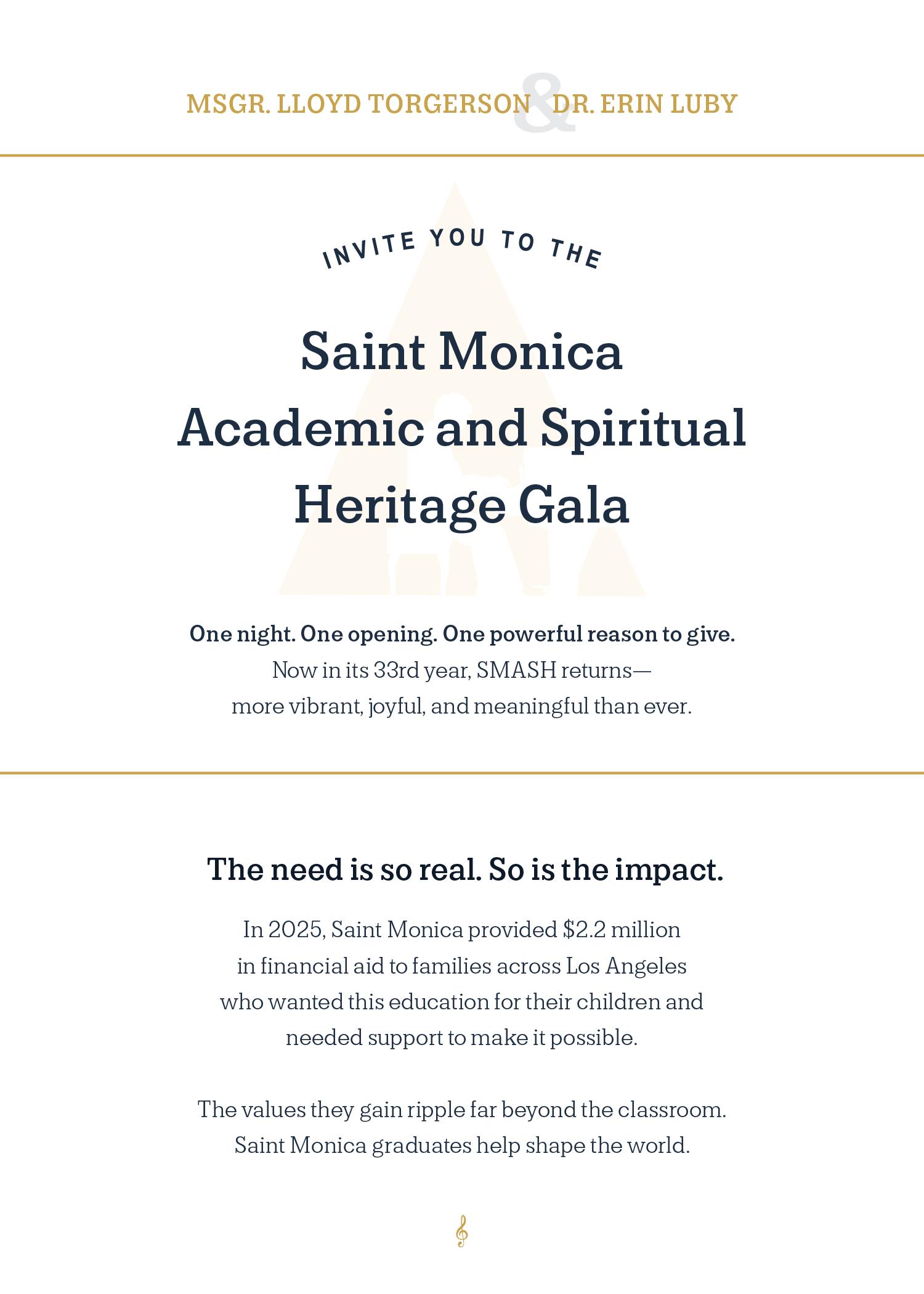 Proceeds directly support financial aid, ensuring access to a Saint Monica education for students across Los Angeles.