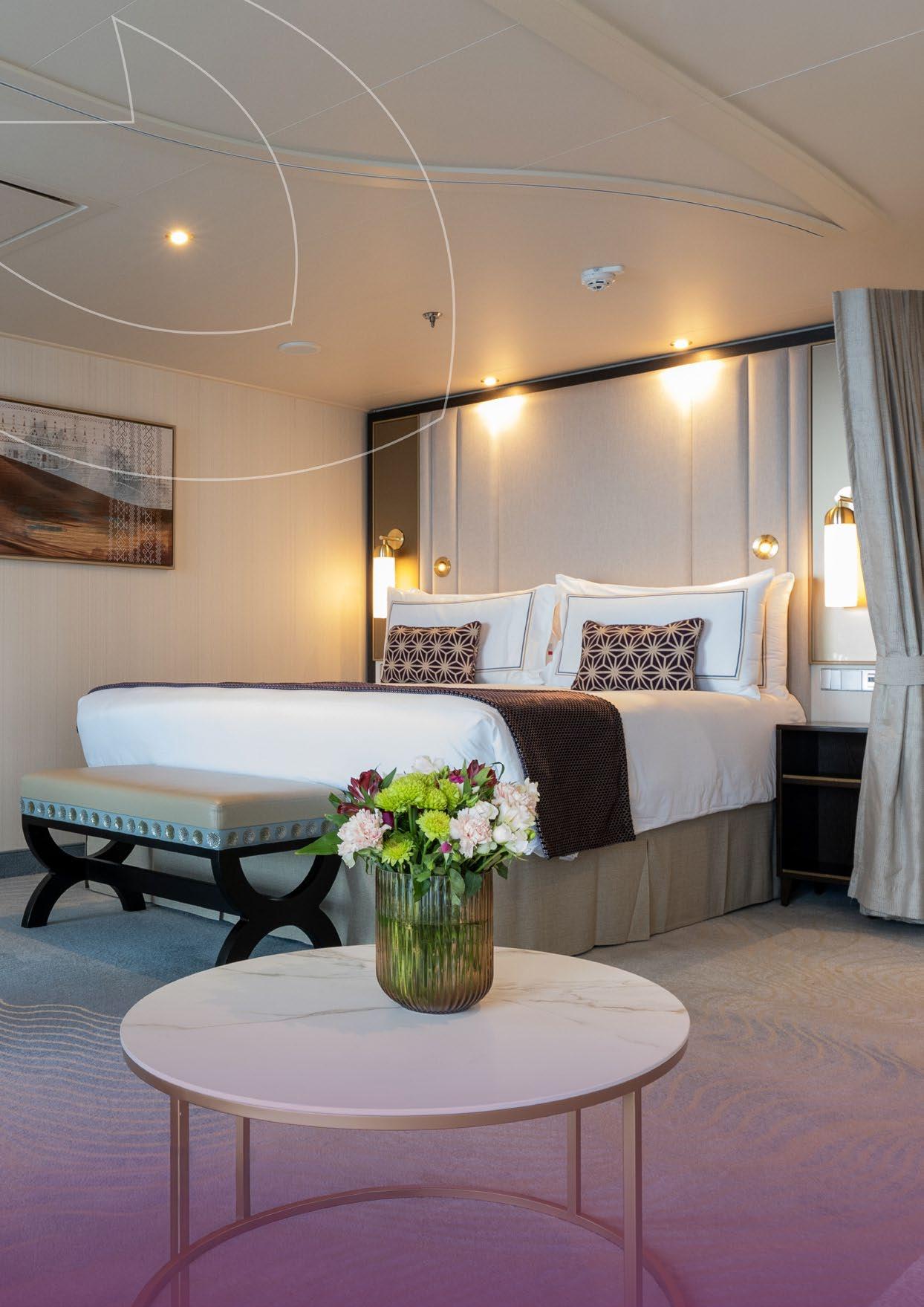 Each stateroom blends contemporary design with elegant Arabian touches, creating an atmosphere of warmth, comfort, and modern luxury.