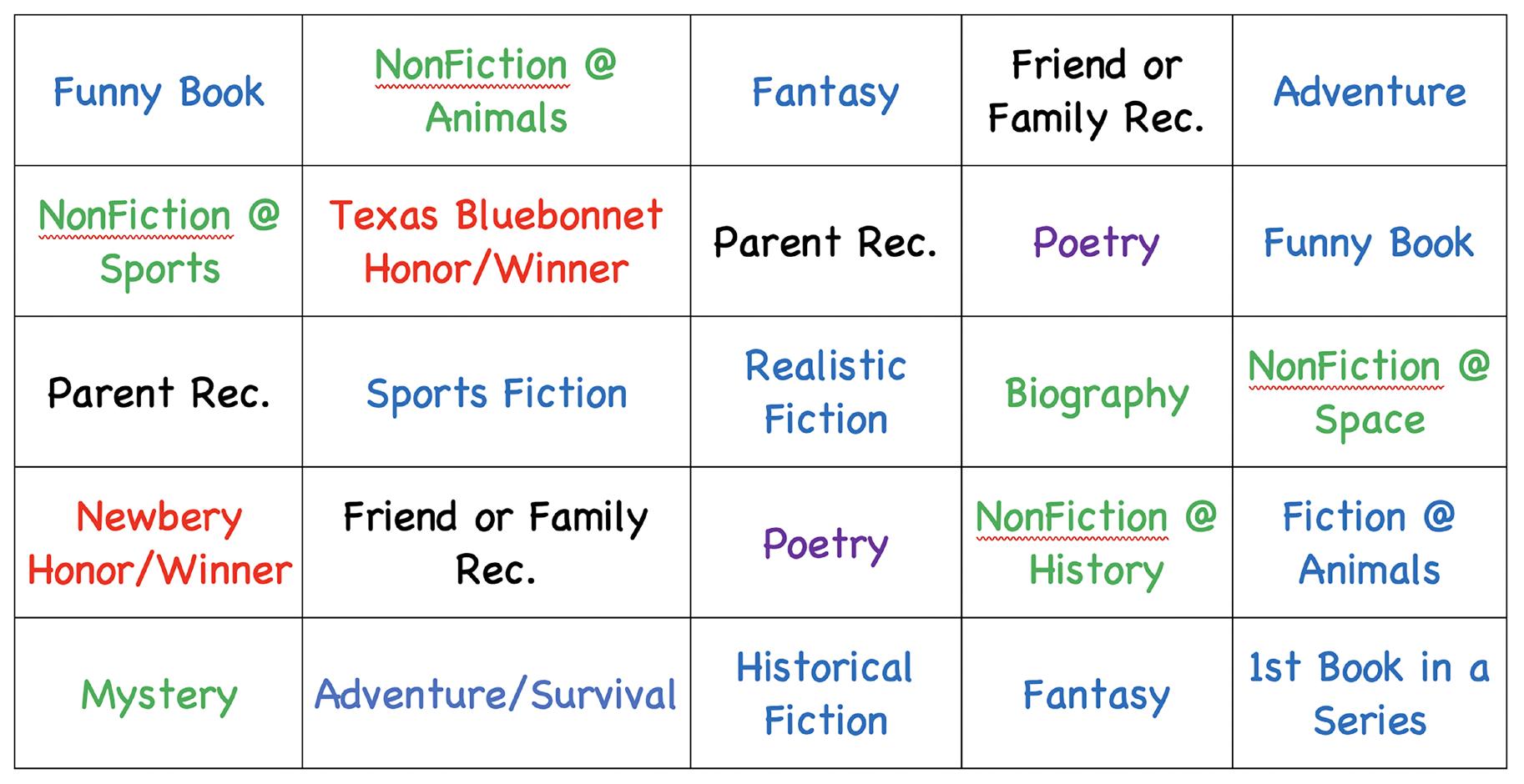 St. Mark’s School of Texas Summer Reading Bingo Fourth Grade