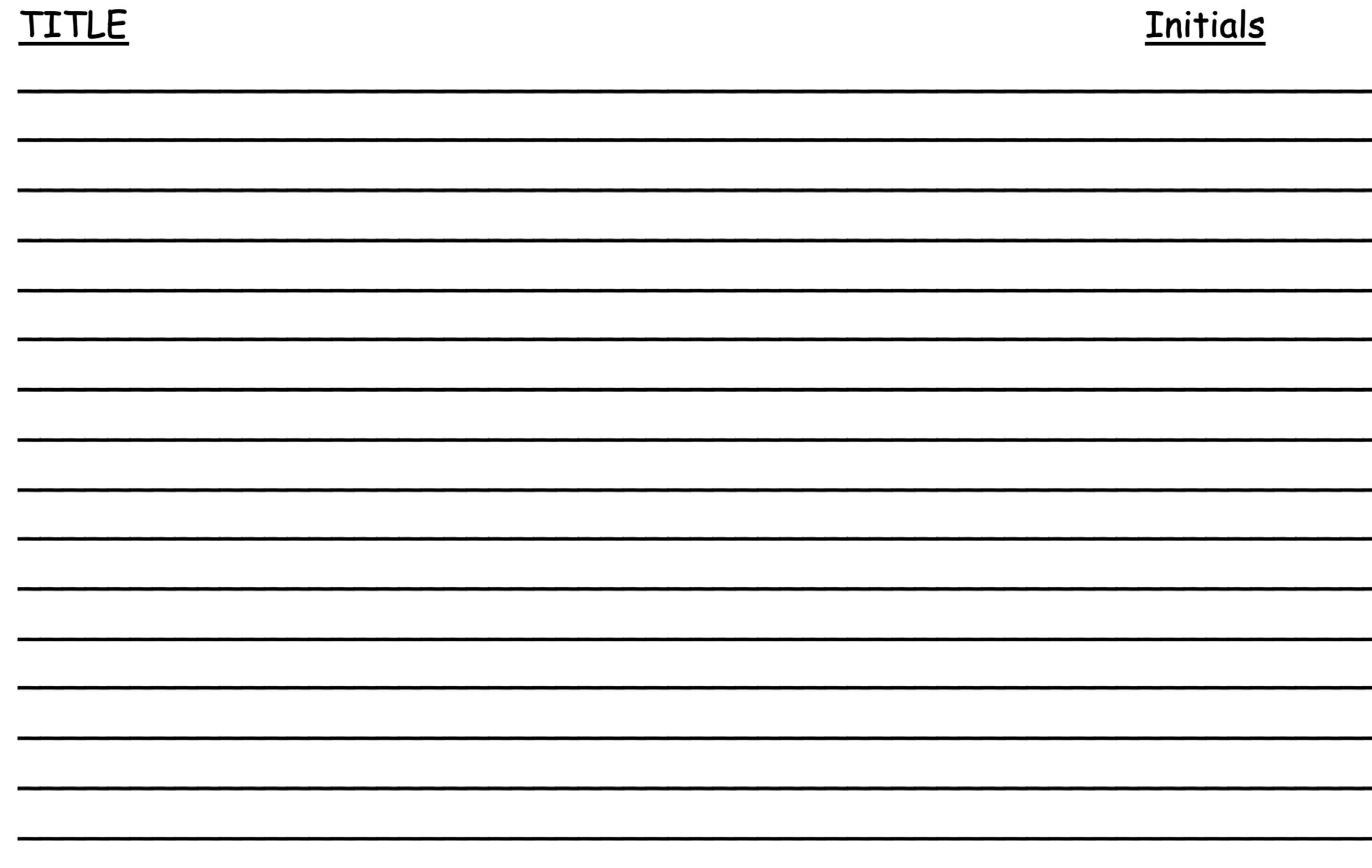 Get BINGO! Put an X in the box when completed. Please write titles on back and have parent initial.