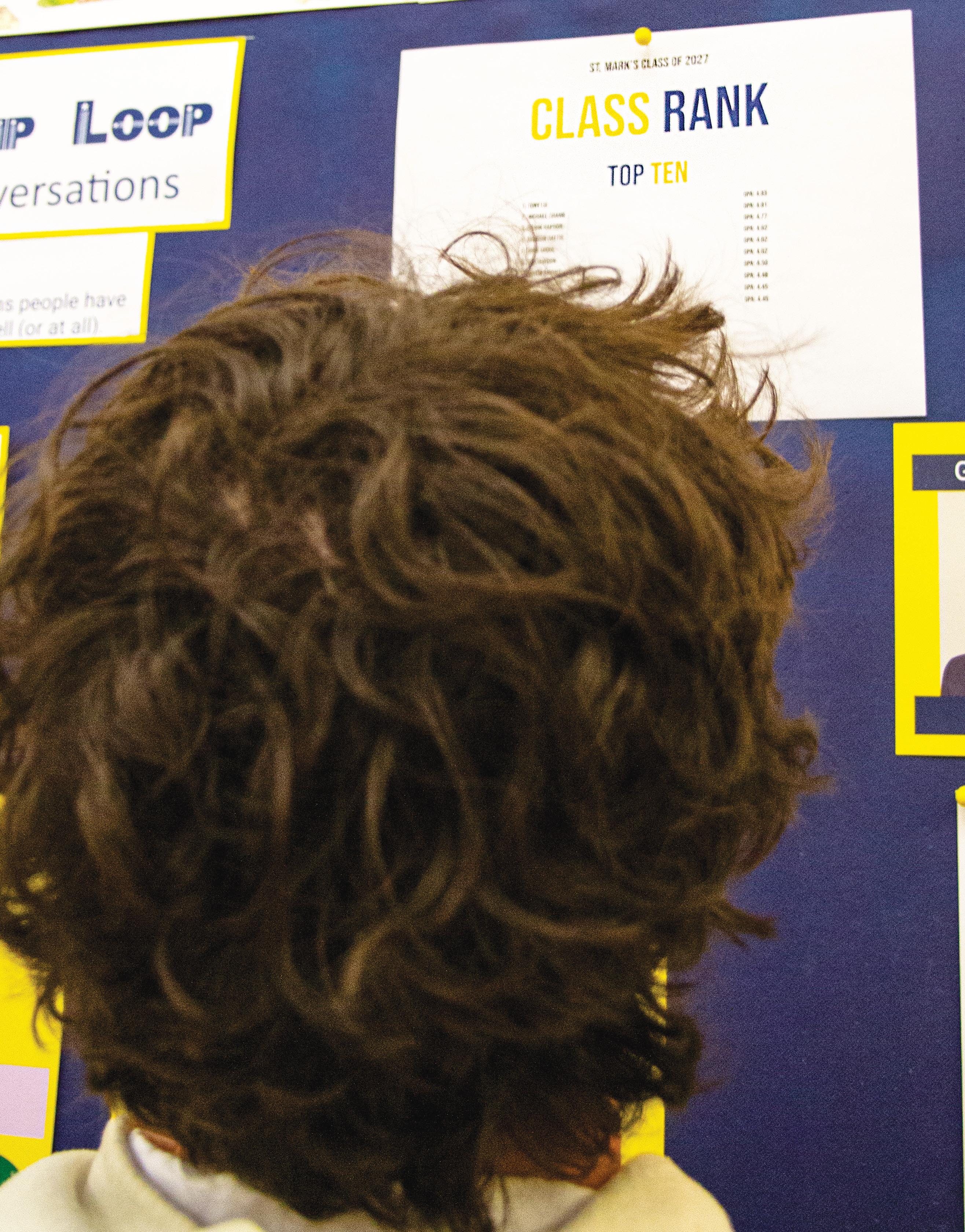 Apart from the valedictorian and salutatorian, the school does not rank students based on their academic performance. Nevertheless, the goal of winning a prestigious award, getting admitted to a top college or simply standing at the top remains prevalent for many students.