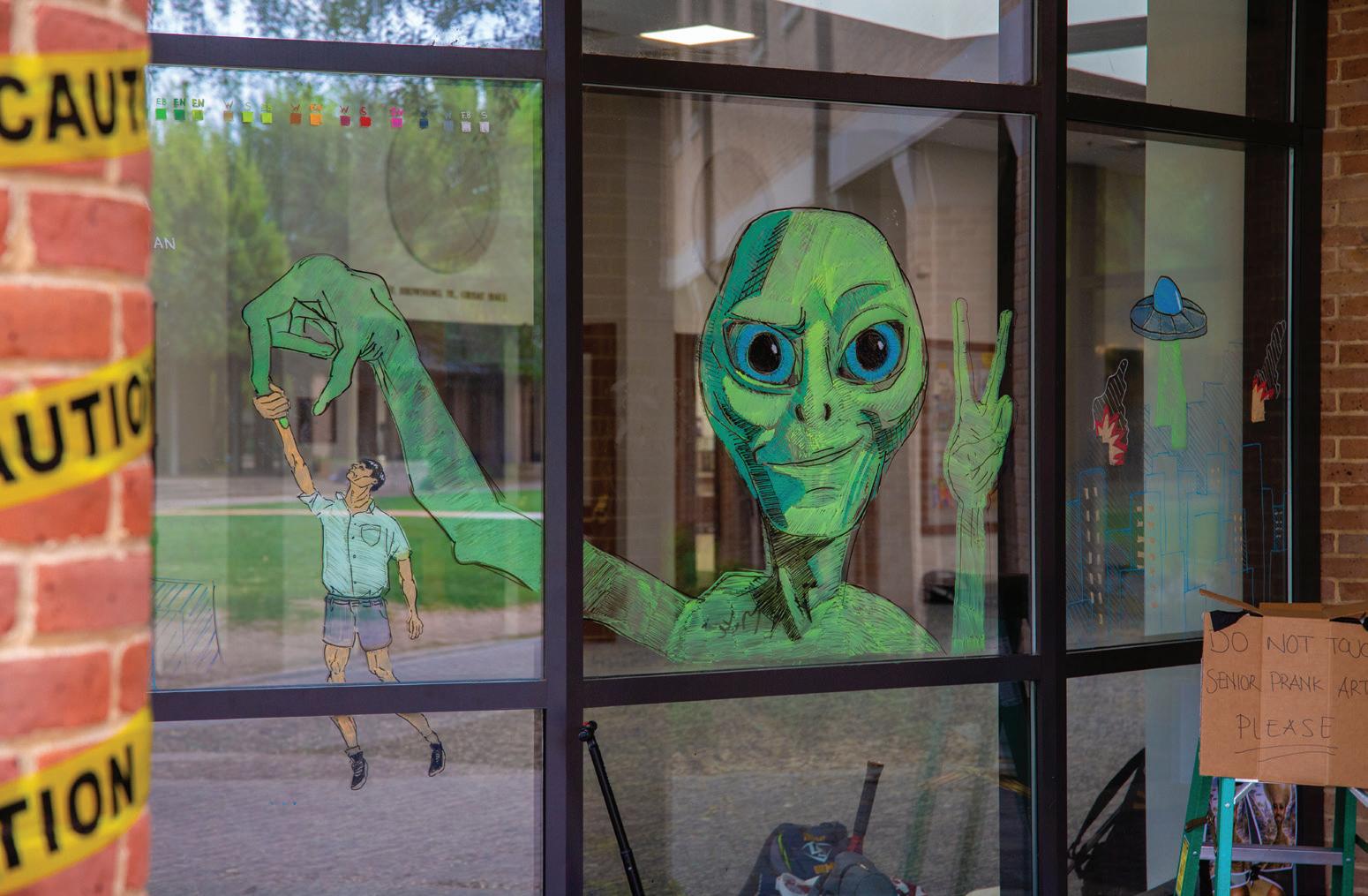 For this year’s senior prank, the class of 2026 transformed campus into Area 51. Complete with volleyball nets, an inflatable slide, the dunk tank, a Kona Ice truck, as well as artwork and props, the community came together for a day full of unexpected surprises.