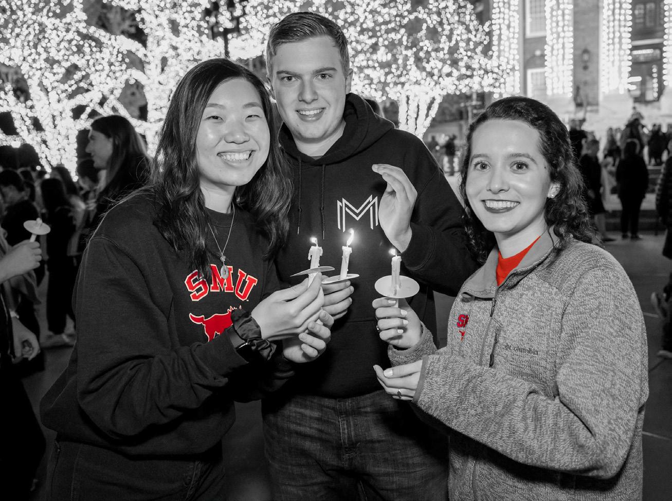 Established in 1977, each year Student Foundation at SMU kicks off the holidays with Celebration of Lights on the Dallas Hall Lawn. All are welcome to this family-friendly evening filled with music, the story of the first Christmas, dazzling lights, and more. The 2021 Celebration of Lights welcomed 3,000 students, faculty/staff, community members, and friends of SMU as Dr. Turner read the Christmas Story and gifted SMU students sang classic holiday songs as Dallas Hall Lawn was lit with thousands of Christmas lights. All engaged in celebration with free food, carriage rides, and many other holiday festivities.