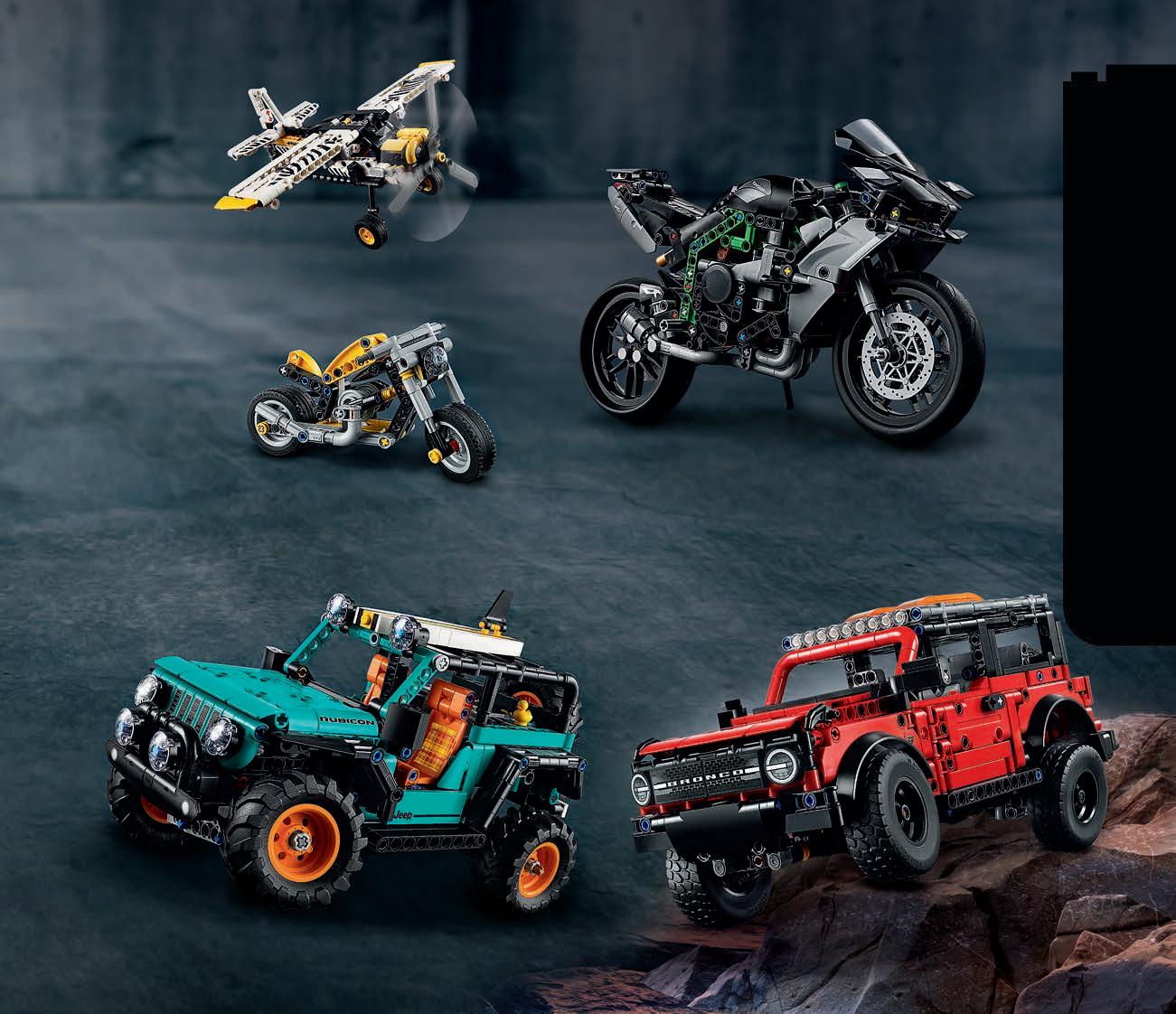 Te zestawy LEGO® dla dorosłych zostały stworzone z myślą o wszystkich miłośnikach pojazdów – tych, którzy lubią prędkość, jak i tych, których pasjonują potężne maszyny.