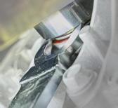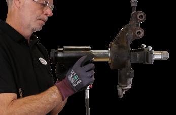 Le joint à rotule placé près du carré d’entraînement de la douille permet d’utiliser la clé à chocs dans les espaces restreints, par exemple pour desserrer des boulons de fusée, de jambe de force ou des bagues ABS
