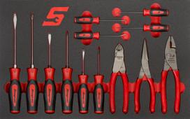 KRBCKCL40BN Servante d’atelier compacte pliable avec 2 tiroirs (Blue-Point®), rouge avec liseré noir SETNLU068B Jeu d’outils de démarrage Snap-on® – 42-pièces, outils uniquement TBSOTFS051AR Jeu d’outils pour SETNLU068B dans KRBCKCL40 noir / rouge
