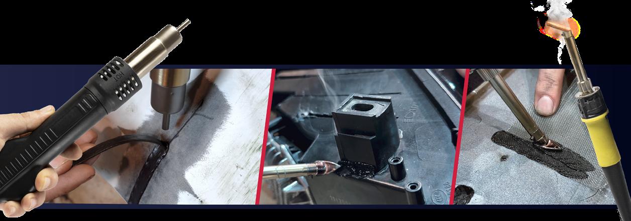 Assure une soudure robuste et permet l’ajout précis de matériau plastique nécessaire pour la réparation