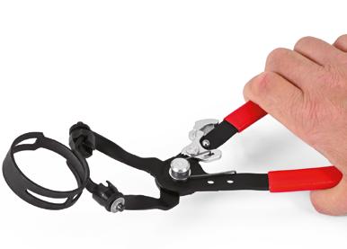La conception unique des mors permet d’utiliser un seul outil pour les colliers de serrage à ressort et les colliers de serrage à bande