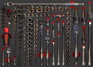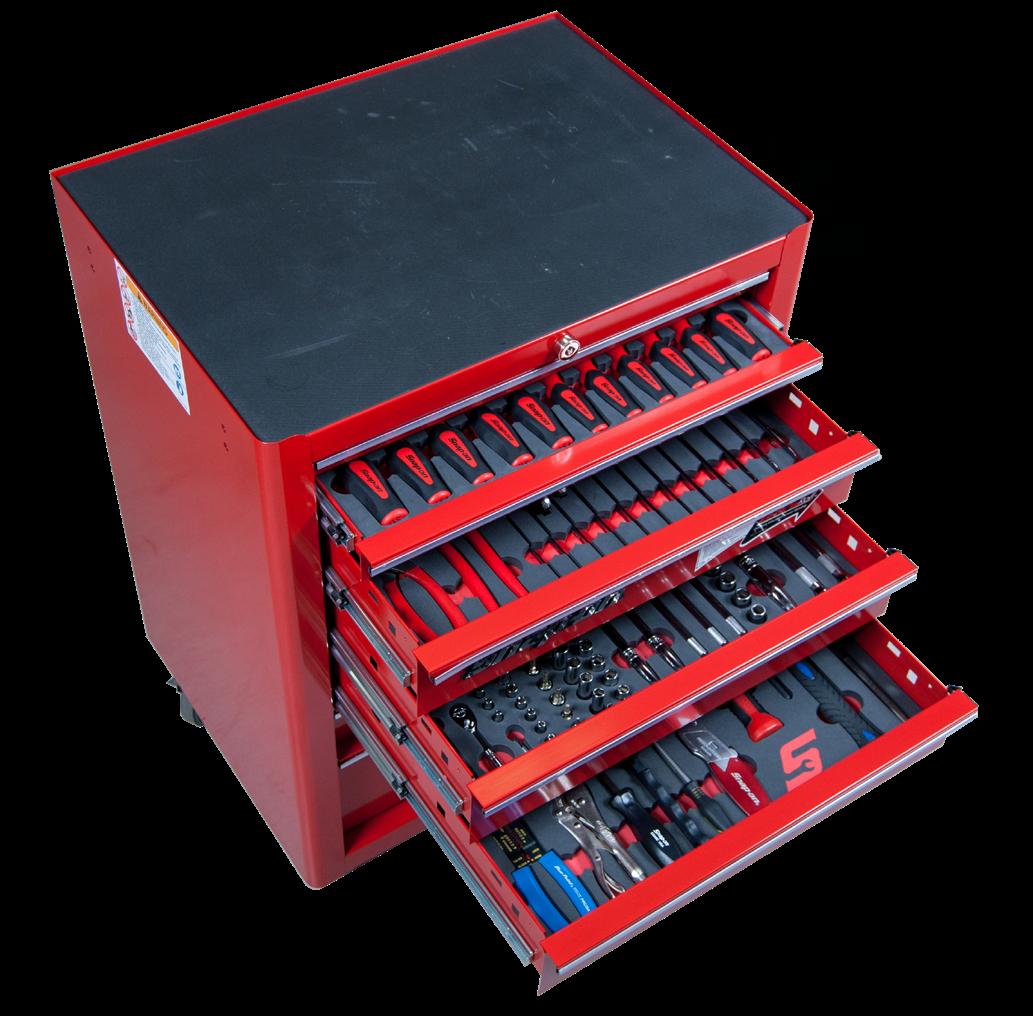 200-teiliges Werkzeugset in einem 7-stöckigen Werkzeugwagen und Tool Control System. 4 Schubladen sind bereits bestückt, sodass Sie noch 3 Schubladen zur Verfügung haben, um Ihr Set in Zukunft zu erweitern