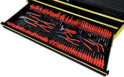 • Plastisol-coated, stamped steel racks protect tools from scratches and provide positive engagement in the rack