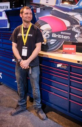 The standout colours of the unique Britten v1000 bike WERE Guy’s inspiration for his 2023 Snap-on toolboxes and complimentary tools...