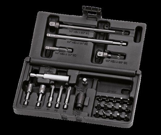 • Popular size insert and power bits included: Flat Tip, PHILLIPS®, PHILLIPS® ACR®, Torx®, Square