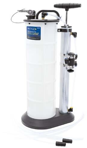 Offers a light, portable and power free solution for evacuating liquids and dispensing them. From Engine Oil using the rigid dipstick tubes to coolant transfer, this complete out the box solution does it all including a safety cut off feature to prevent the reservoir from over filling.