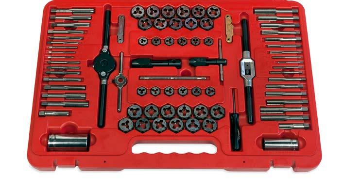 Set includes a huge range of tap wrenches, die stocks, thread gauges and exclusive die sockets, ideal for all your tapping needs