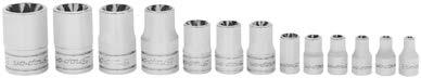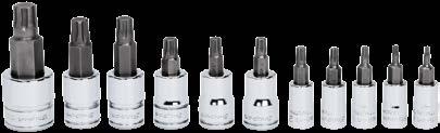 • Includes (6) 1/4" drive, (3) 3/8" drive and (4) 1/2" drive TORX® shallow sockets in a magnetic storage tray