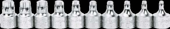 • Includes (5) 3/8" drive (EP8-EP16) and (4) 1/2" drive (EP18EP2P4) TORX Plus® shallow sockets in a magnetic storage tray