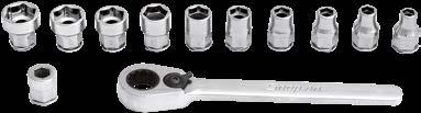 • Includes (10) low-profile 6-point sockets (5–13mm), (1) lowprofile ratchet and a low profile magnetic bit holder