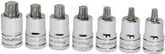 • Includes (7) bit stubby sockets: (6) TORX® (T27, T30, T40, T45, T50 and T55) and (1) T47*