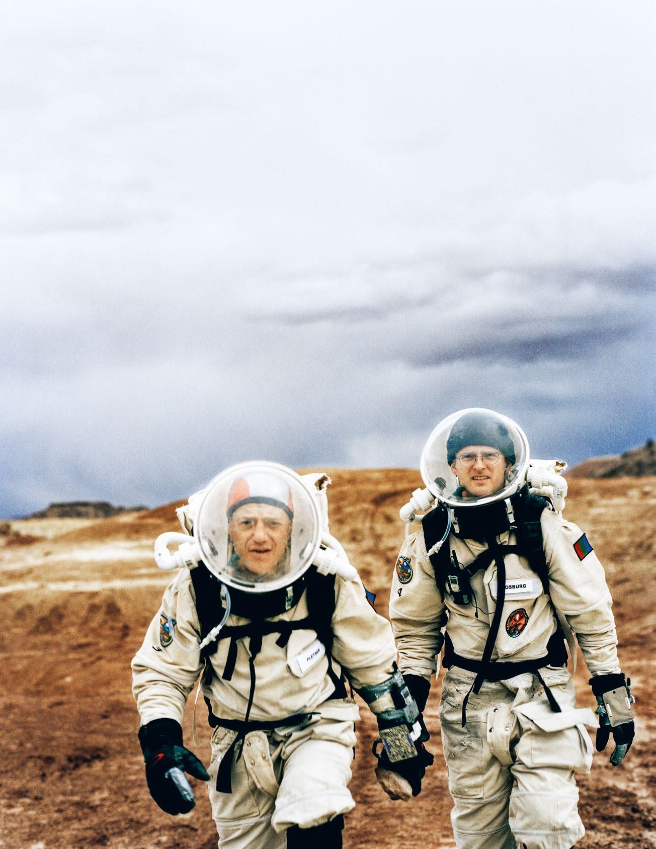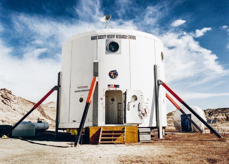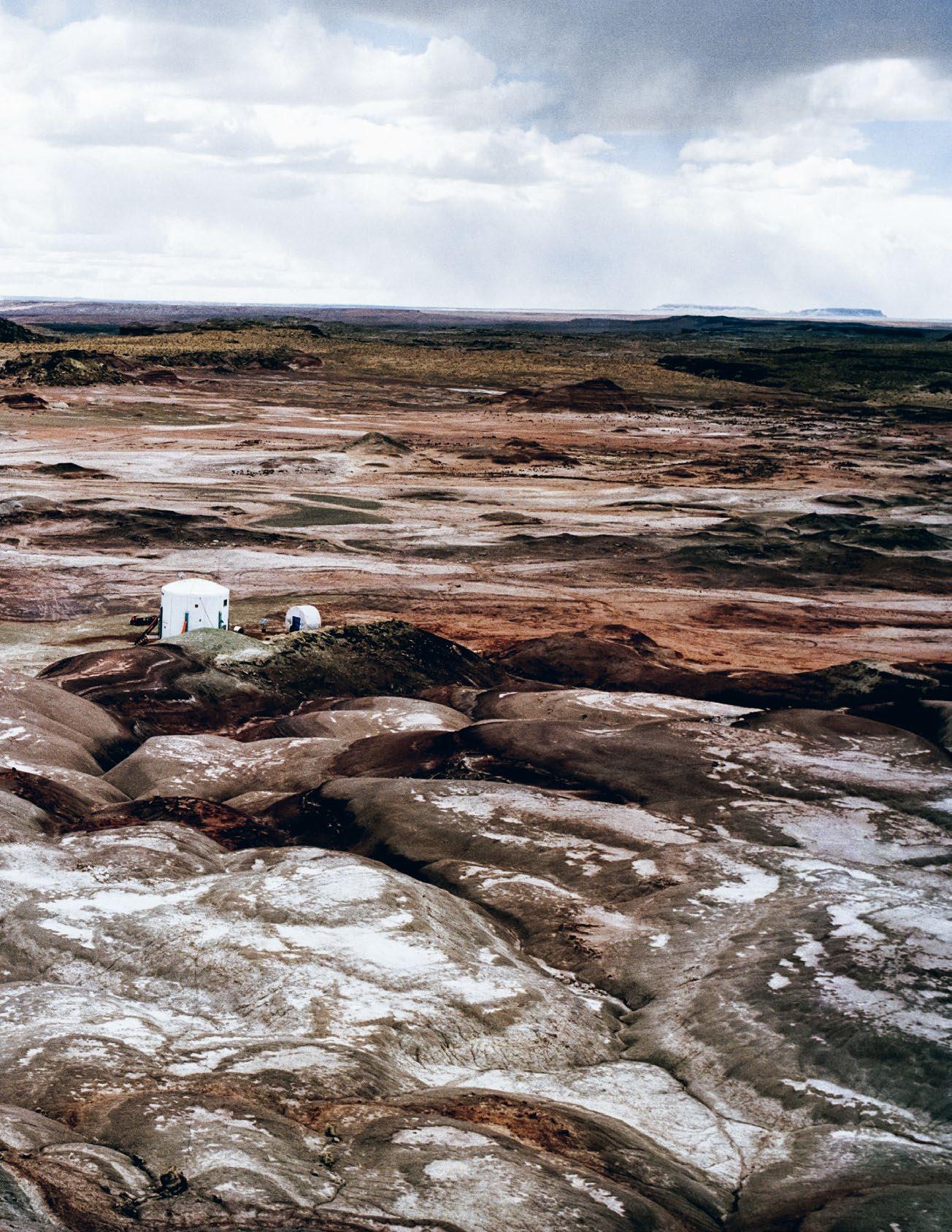 A gauche: Depuis plus de vingt ans, la station de recherche de la Mars Society américaine dans le désert de l’Utah permet l’entraînement aux missions martiennes.Page de couverture: Chaque début d’expédition est empreint de courage et de rêves. Photos: Vera Hartmann