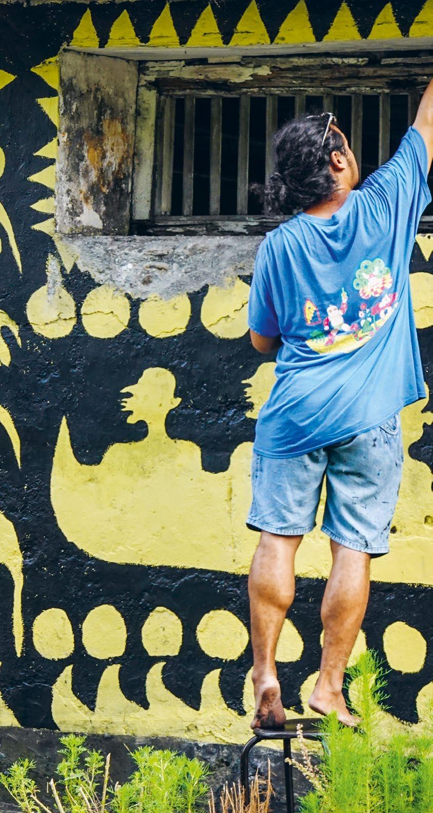 Trois personnages jaunes dans un canoë traditionnel glissent sous les yeux de l’artiste de rue. Il peint leur histoire dans une fresque sur un mur de la maison de sa grandmère. Il s’agit d’un «hommage à ses ancêtres», comme il l’a confié à l’anthropologue Patricia Spyer qui étudie l’art de rue dans les îles indonésiennes de Banda. Sous son nom d’artiste Nuki, il aborde dans ses peintures murales l’histoire de sa famille. La fresque représente son arrière-arrière-grandpère et les frères de ce dernier. Au XIXe siècle, ils faisaient commerce de perles –symbolisées par les cercles jaunes au-dessus et en dessous du canoë –, une activité qui leur a prodigué richesse et prestige. Une équipe de tournage accompagne Patricia Spyer sur le terrain. Elle réalise avec la cinéaste indonésienne Ratih Prebatasari un documentaire ethnographique sur les artistes de Banda. «Leurs œuvres évoquent le lien étroit qu’ils ont avec leur terre et leur intérêt pour l’histoire des îles marquées par la domination coloniale», souligne l’anthropologue.
